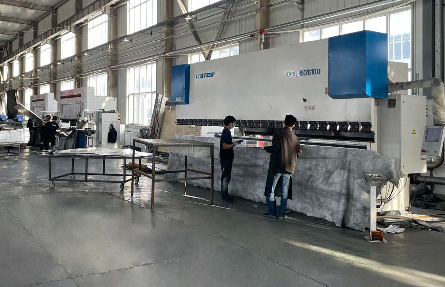 本公司拥有先进的数控雕刻机、数控剪板机、数控折弯机、数控转塔冲床等高端进口钣金生产设备,可以满足各种复杂造型、繁项工艺、高质量、高精度的产品生产加工要求。引进先进的光纤激光切割机两台,精准开料,确保每一件铝板工件尺寸的加工精度;全伺服数控冲床5台;数控雕刻机3台;数控折弯机8台,把控每一个折弯角度;全伺服数控刨槽机2台,其切削精度可控制在0.02mm;全自动蜂窝板成型生产线一条,实现蜂窝板自动化一次成型。