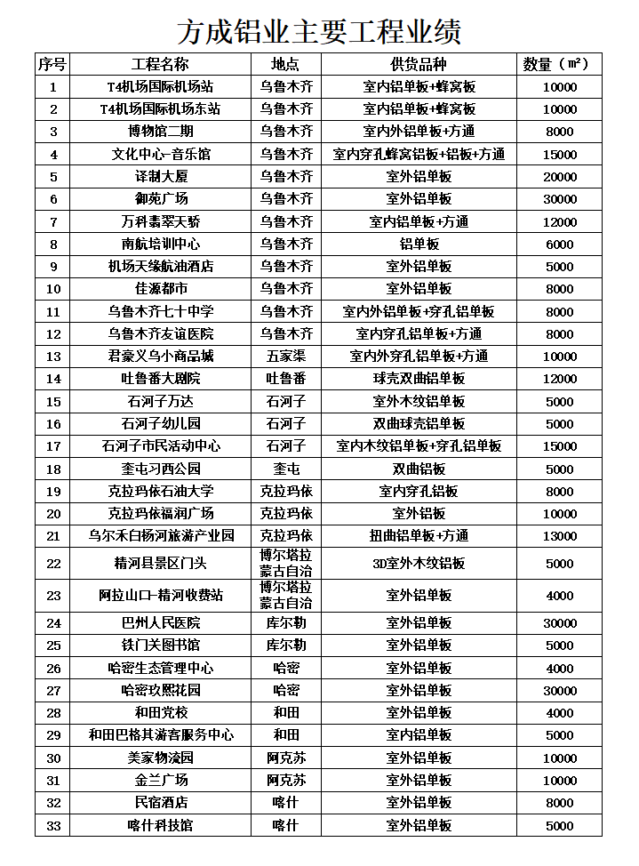 方成铝业主要工程业绩